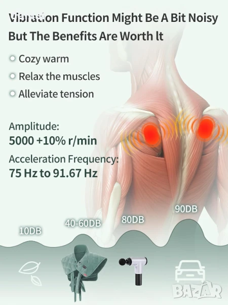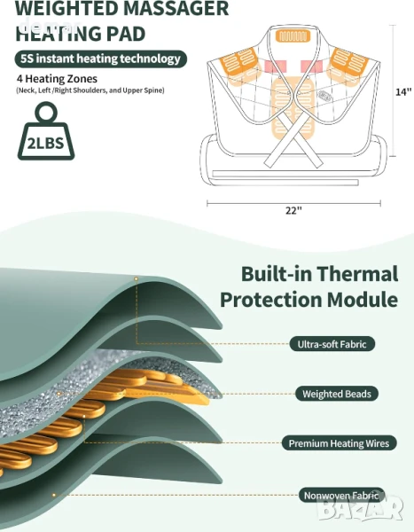 Безжична нагревателна подложка Vofuoti за врата и раменете, претеглена, 33,2x25,8x10,1 см; 1,14 кг