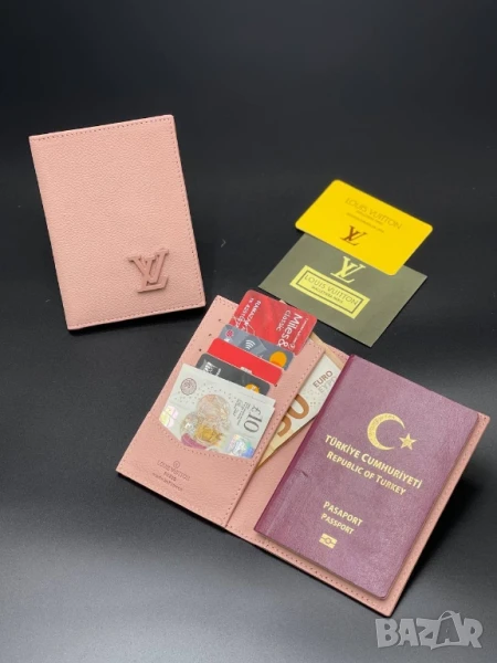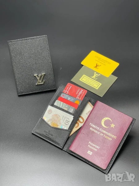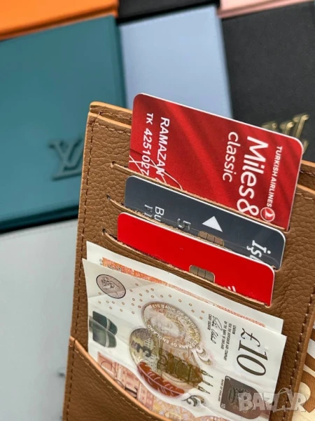 портмонета от естествена кожа в кутия louis vuitton