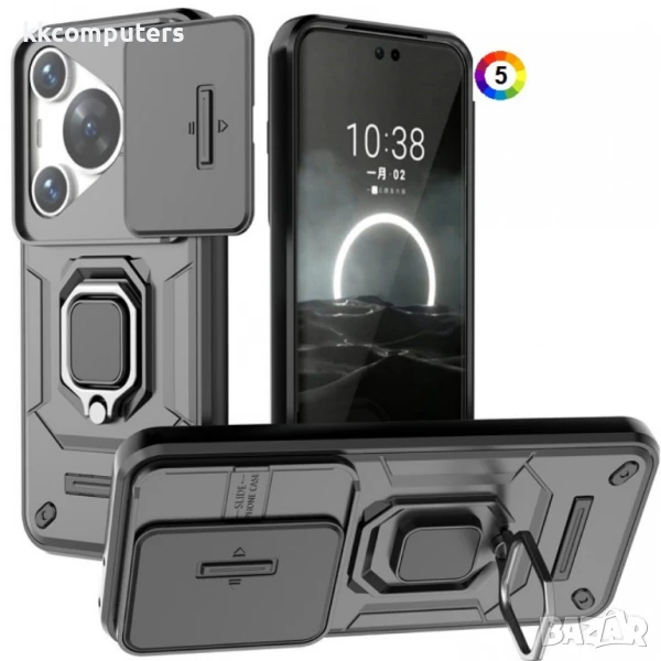 Huawei Pura 70 Pro / Pura 70 Pro+ Удароустойчив Ring Holder/Slide Lens Protection Калъф и Протектор