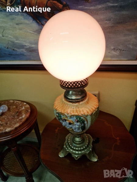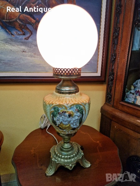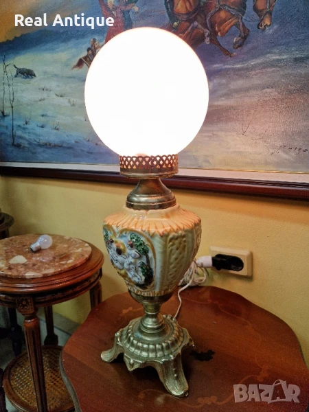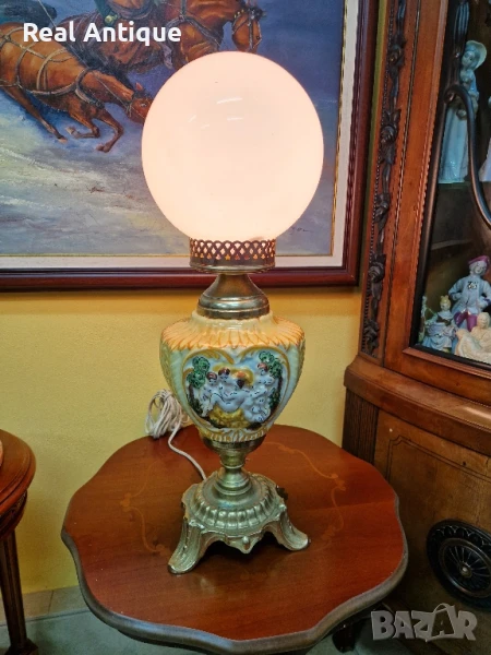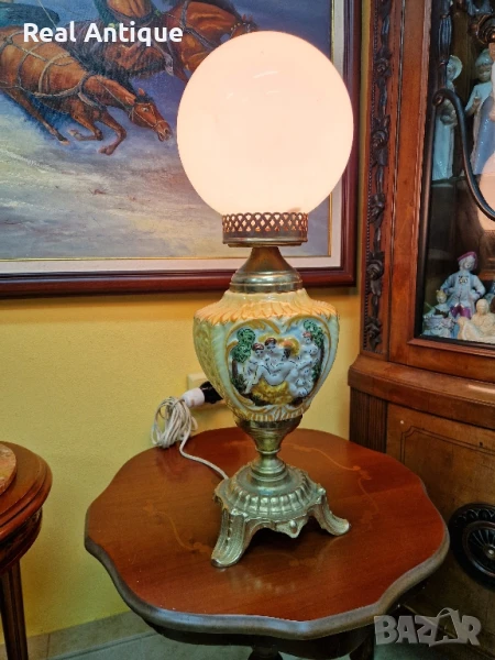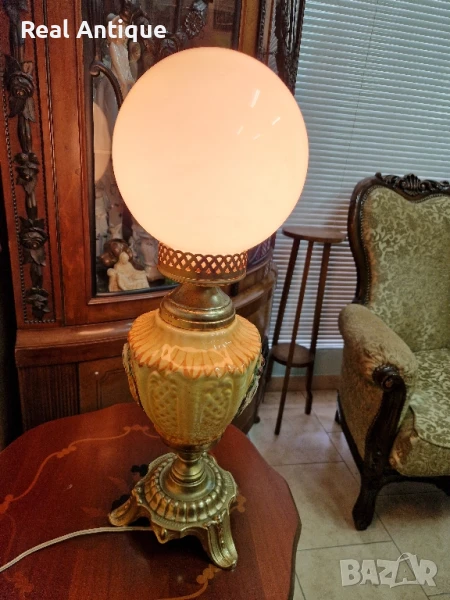 Продавам страхотна много красива антикварна настолна лампа от бронз и порцелан в перфектно състояние без никакви забележки отлично работеща. Височина 60 см ширина 20 см. Прекрасно допълнение към интериора на Вашия дом офис вила ресторант хотел. Подходящ и за подарък. Работя с всички куриери. Отговарям бързо.