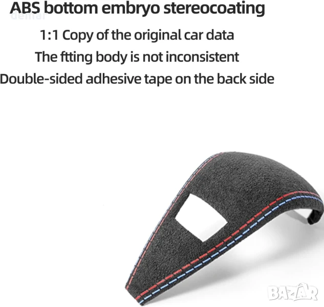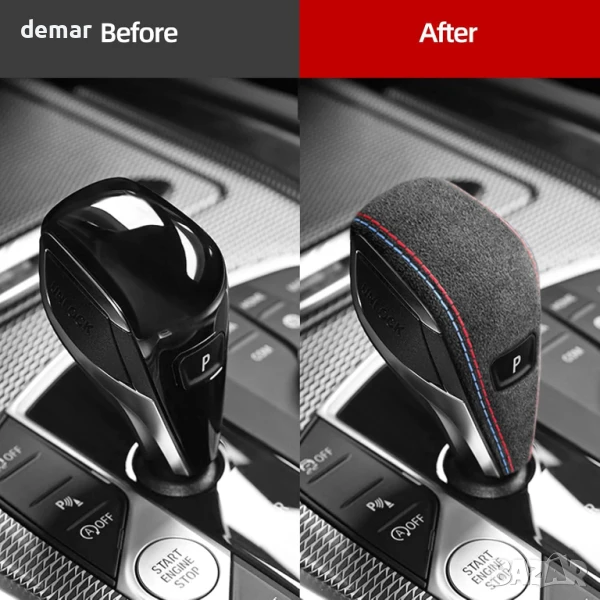 Изработен от италианска алкантара с твърда ABS основа, този калъф за скоростен лост е с велурено покритие и червено-сини шевове за премиум вид. Проектиран за прецизно пасване 1:1 на моделите BMW G20, G28, G42, G23, X3, X4, IX3, I4 и Z4, той предлага пълно покритие, за да предпази оригиналния лост от износване. Лесен за монтаж с лепяща подложка, той просто се залепва на мястото си, след като повърхността се почисти. Дизайнът добавя спортни акценти, вдъхновени от M, придавайки на интериора по-стилен и изискан завършек.