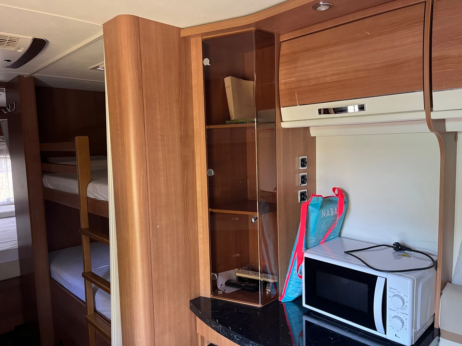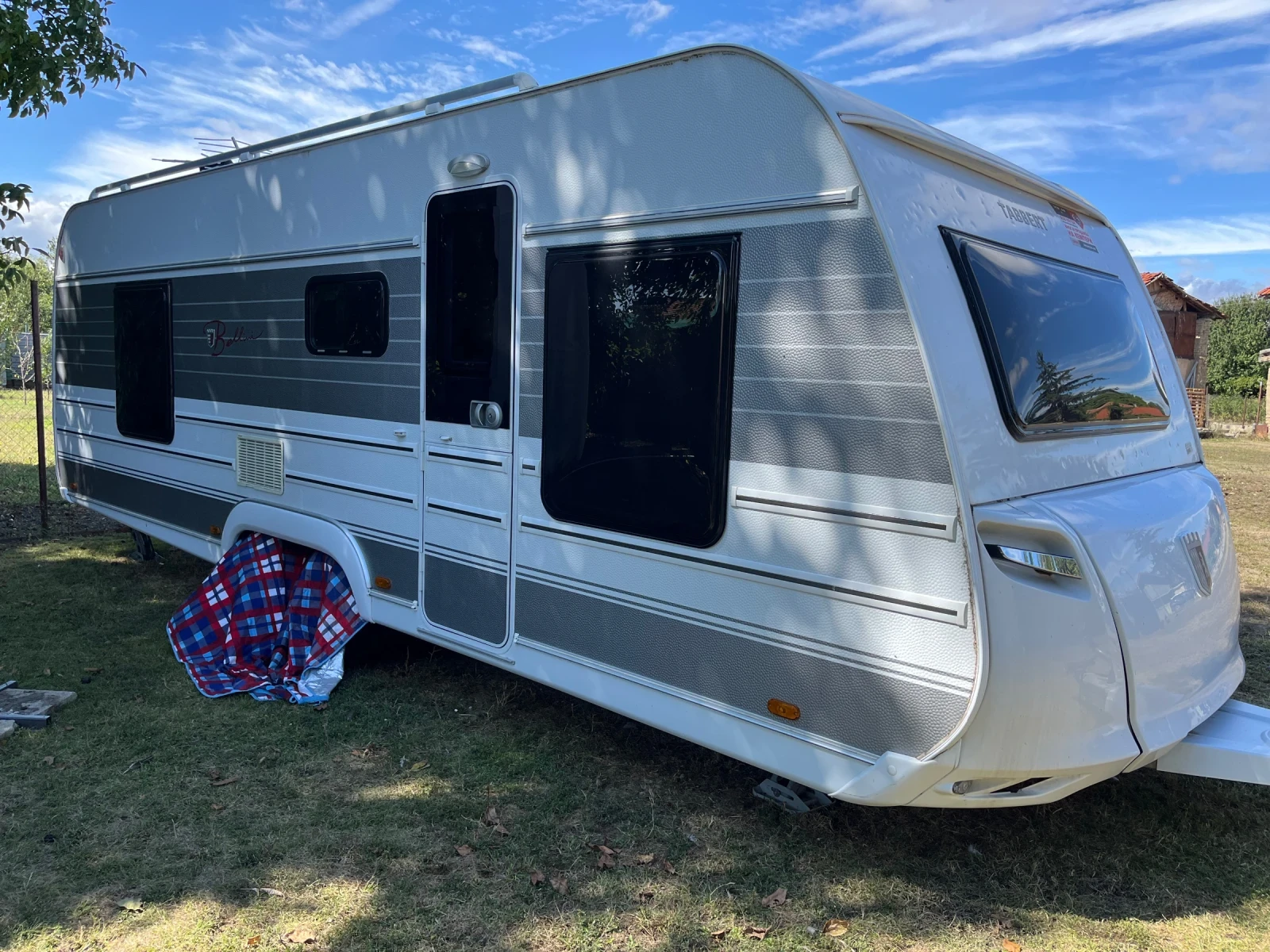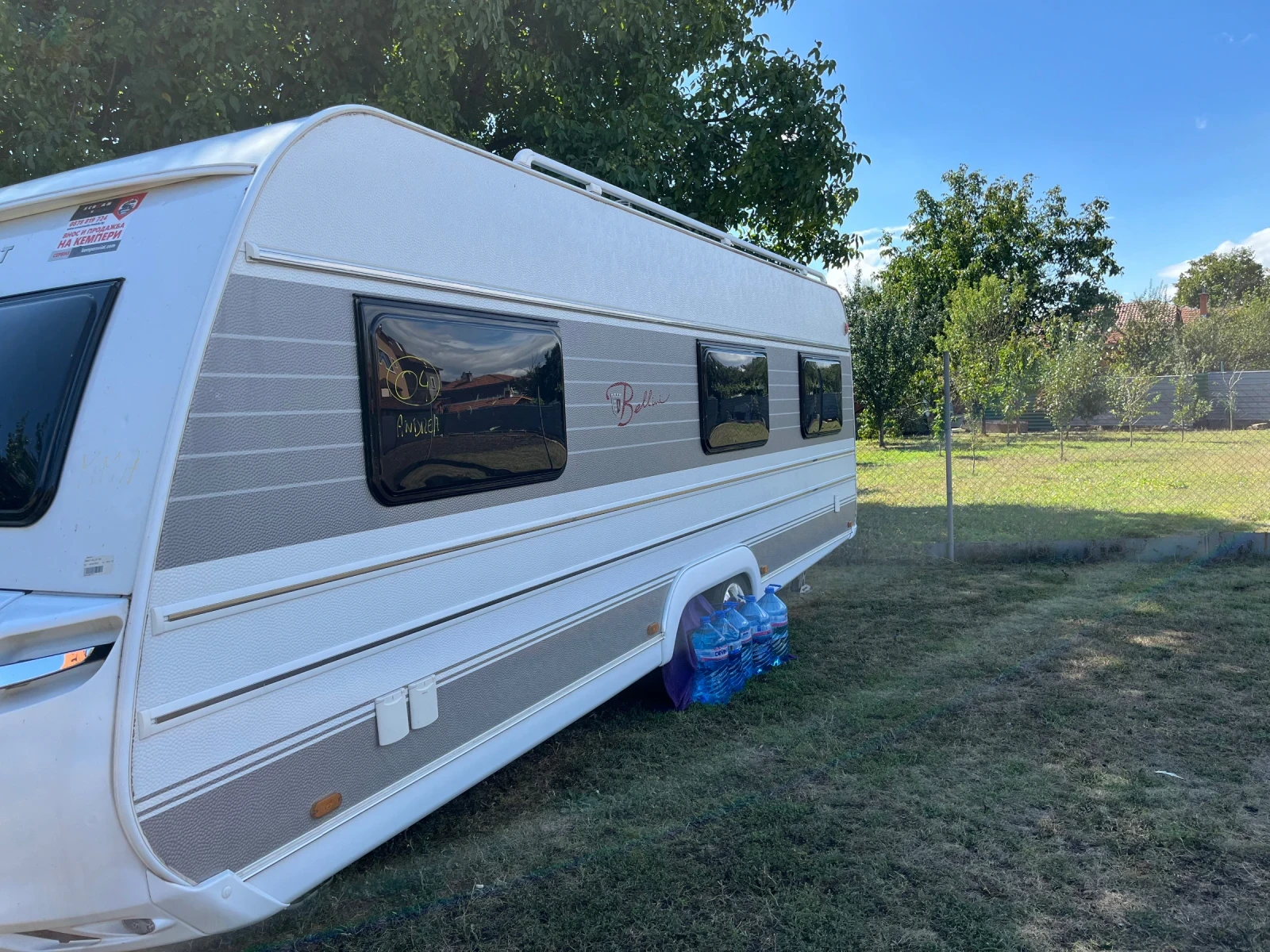 - Регистрирана - В отлично състояние, без течове и миризми - Двуетажни легла с размер 70/180 - Дължина с теглича 8. 4м - Вътрешна дължина 7. 3м - Ширина 2. 45м - Височина 2. 7м - Тегло 2000кг - Отопление газ/ток - Хладилник с камера (голям) на газ/ток - Климатик ( фабрично монтиран) - Бойлер (фабрично монтиран) - Резервоар за чиста вода 30л - Външно осветление - Комарници, щори и перденца на всички прозорци - Антивибрационен теглич - Много отделения за складиране на багаж Съхранява се под навес, който я предпазва от слънце, дъжд и сняг. Почти не е използвана, за последната година около 4 нощувки.