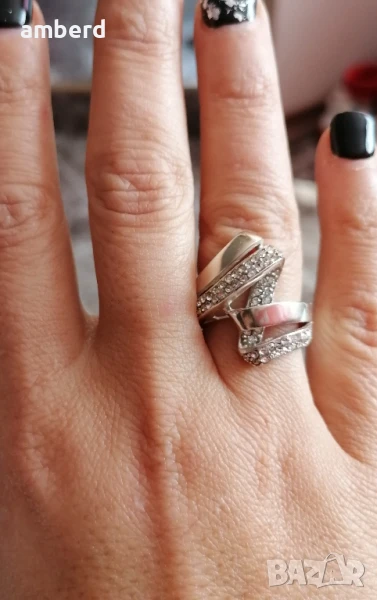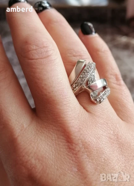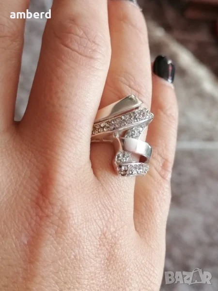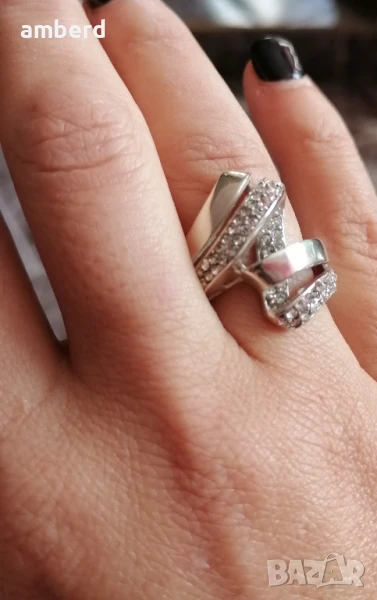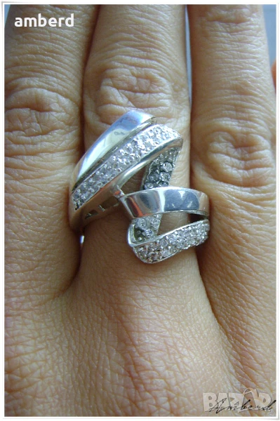 Елегантен и стилен пръстен, изработен от сребро проба 925 и 55 бели циркони. Вътрешен диаметър 17,2мм. Тегло - 7,60гр.