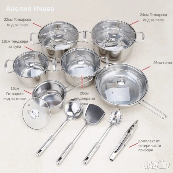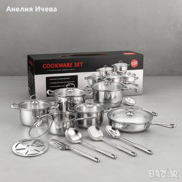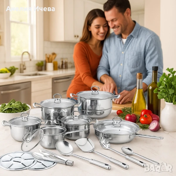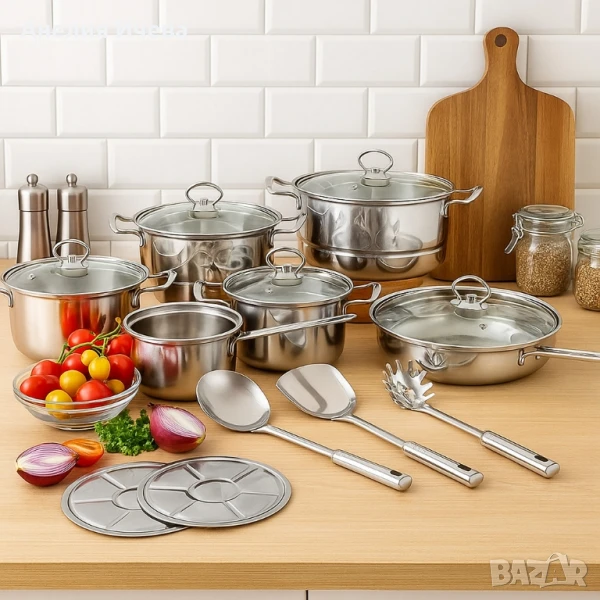 Премиум комплект съдове и прибори за готвене от неръждаема стомана -18 части