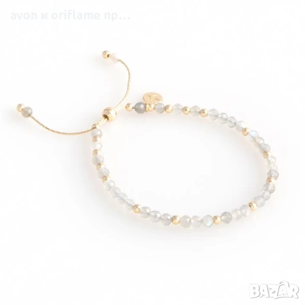 18-каратово златно покритие с полускъпоценни камъни. Регулируема от прибл. 16 см.
