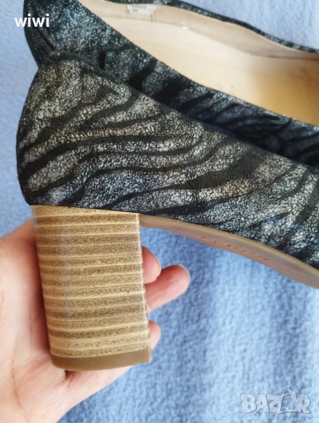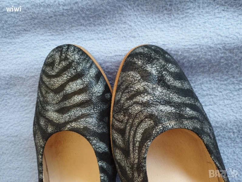 Обувките са обувани един път,буквално са нови.Мека естествена кожа.Много леки,удобни и комфортни.Скъпа и качествена марка.Анатомична стелка.Въздушна подметка.Тока е с височина 6см,стелката е с дължина 25.7см.Атрактивен десен.Цена 65лв.