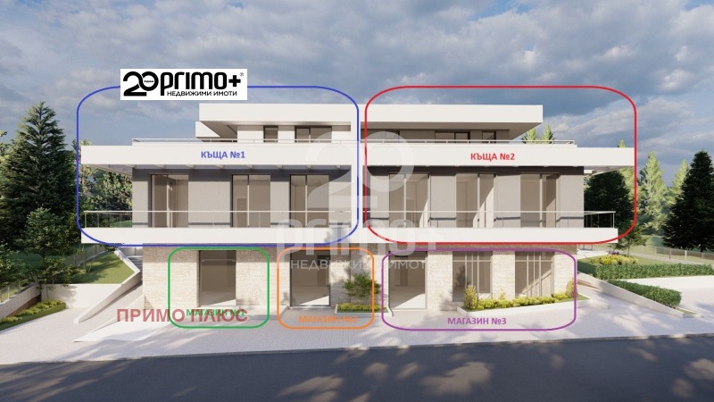Представяме ви ексклузивен проект за две къщи-близнак (всяка със самостоятелен двор) и три търговски обекта на партерно ниво. Висок клас материали.