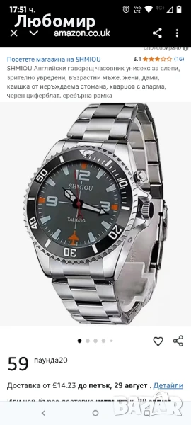 Този говорещ часовник е не само приятен подарък за възрастни хора с увредено зрение, но и идеален за спортисти на открито или строителни работници, готвачи, медицински сестри или лекари и др. Той е издръжлив и има добра стойност.