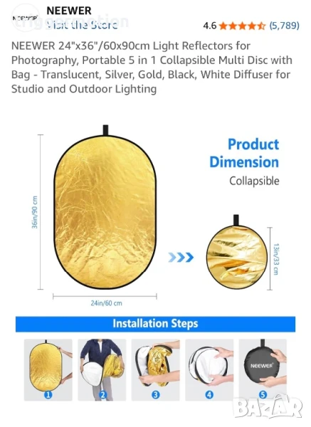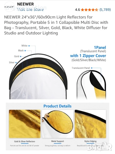 Neewer 5 в 1 мултифункционален фотографски рефлектор за студио и външна фотография 60 ×90 см, снимка 1 - Светкавици, студийно осветление - 51407685 Neewer 5 в 1 мултифункционален фотографски рефлектор за студио и външна фотография 60 ×90 см, снимка 2 - Светкавици, студийно осветление - 51407685 Neewer 5 в 1 мултифункционален фотографски рефлектор за студио и външна фотография 60 ×90 см, снимка 3 - Светкавици, студийно осветление - 51407685 Neewer 5 в 1 мултифункционален фотографски рефлектор за студио и външна фотография 60 ×90 см, снимка 4 - Светкавици, студийно осветление - 51407685 Neewer 5 в 1 мултифункционален фотографски рефлектор за студио и външна фотография 60 ×90 см, снимка 5 - Светкавици, студийно осветление - 51407685 Neewer 5 в 1 мултифункционален фотографски рефлектор за студио и външна фотография 60 ×90 см, снимка 6 - Светкавици, студийно осветление - 51407685 Neewer 5 в 1 мултифункционален фотографски рефлектор за студио и външна фотография 60 ×90 см, снимка 7 - Светкавици, студийно осветление - 51407685 Neewer 5 в 1 мултифункционален фотографски рефлектор за студио и външна фотография 60 ×90 см, снимка 8 - Светкавици, студийно осветление - 51407685 Neewer 5 в 1 мултифункционален фотографски рефлектор за студио и външна фотография 60 ×90 см, снимка 9 - Светкавици, студийно осветление - 51407685 Neewer 5 в 1 мултифункционален фотографски рефлектор за студио и външна фотография 60 ×90 см, снимка 10 - Светкавици, студийно осветление - 51407685 Neewer 5 в 1 мултифункционален фотографски рефлектор за студио и външна фотография 60 ×90 см, снимка 11 - Светкавици, студийно осветление - 51407685 1/11