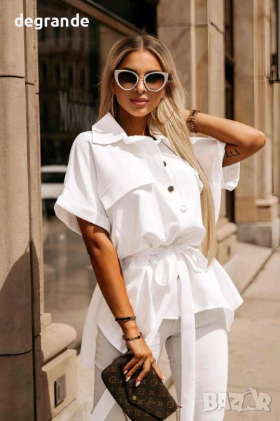 Италиански ризи с колан налични в синьо розово и бяло → Обява 51408288