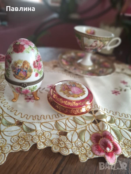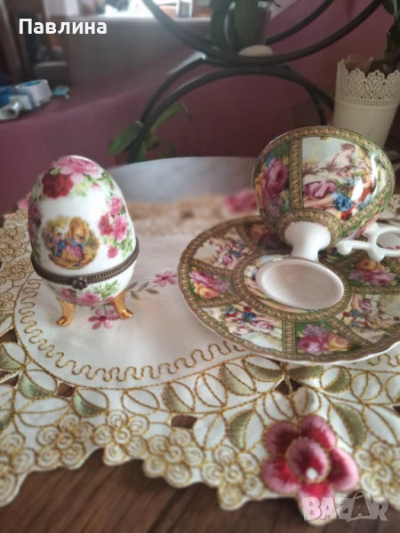 Порцеланова чаша за чай/кафе. С вместимост 200 мл. Цена 35 лева Няма маркировка! Бижутерка яйце с маркировка - 40 лв. Бижутерка кръгла с маркировка 35 лева.