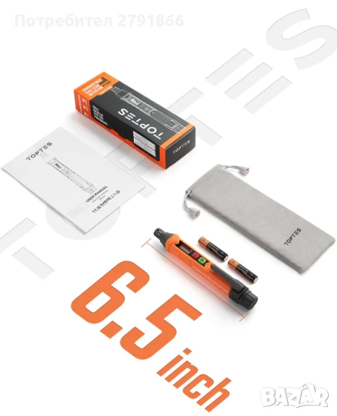 - Какво получавате: 1x Детектор за течове на газ PT199, 1x Чанта за съхранение, 2x AAA батерии, 1x Ръководство за потребителя. Обхват на откриване: 50-1000 ppm (на базата на метан). Разстояние на откриване: 1-5 см