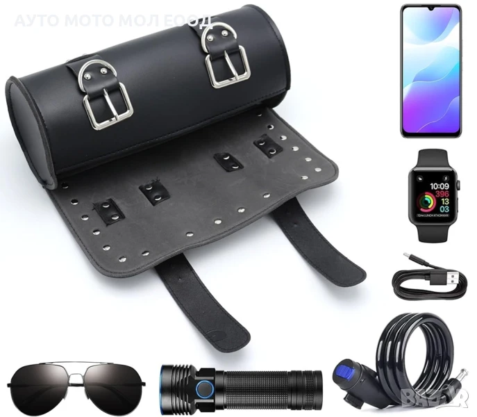 Кожена чанта за инструменти за мотоциклет тип Цилиндър. → Обява 51408821