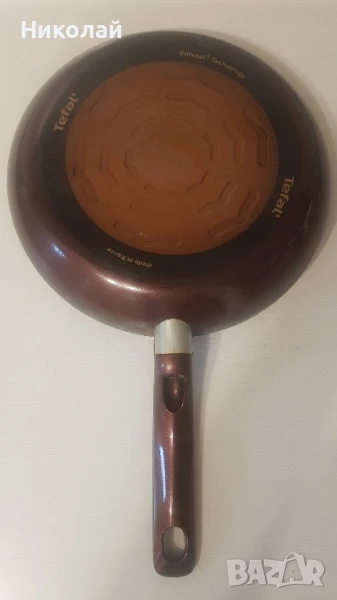 тиган Tefal с незалепващо покритие,ползван 2-3 пъти,не повече. Размер-28см. Без никакви забележки,неразличим от нов.