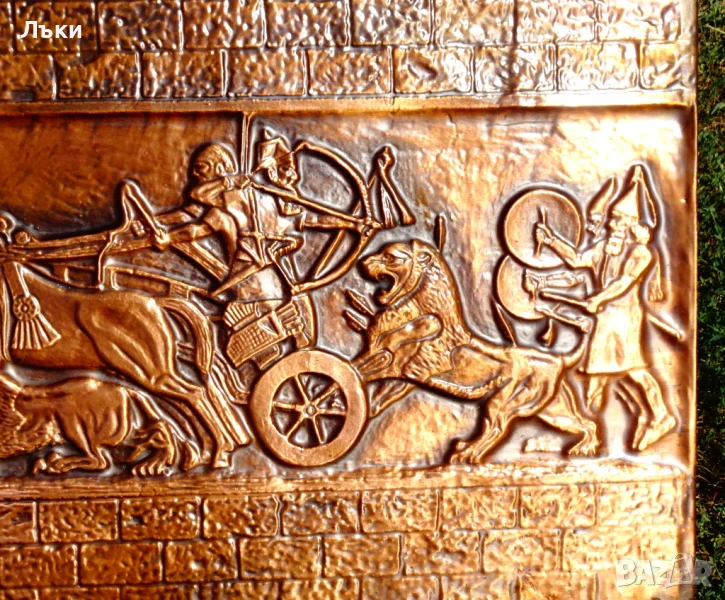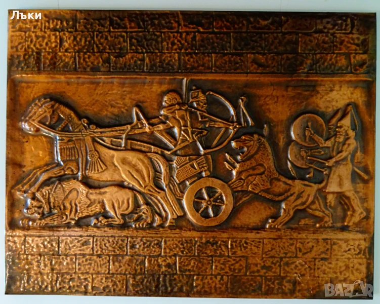 Старинно медно пано,релефна медна картина,ръчно кована от
