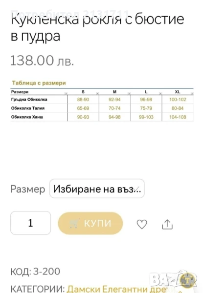 Роклята е в отлично състояние,за повече информация или допълнителни размери ми пишете или се обадете.