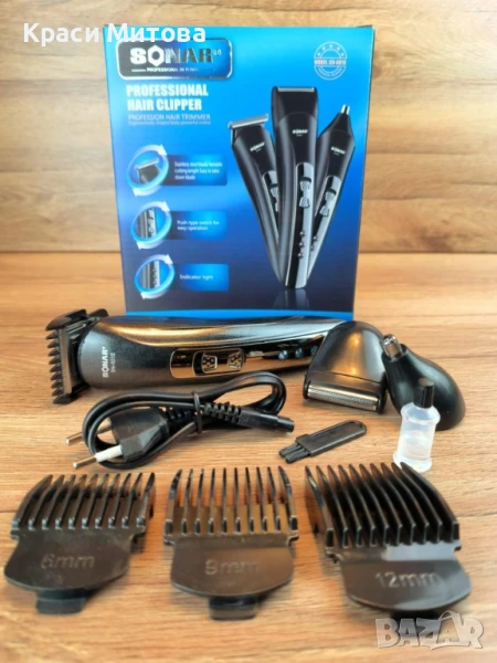 1 x машинка за подстригване (машинка за подстригване, глава за самобръсначка, тример за нос и уши)