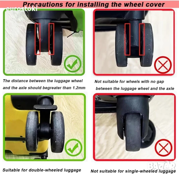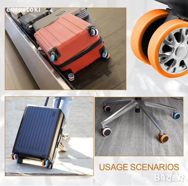 8 броя протектори за колела за куфар, силиконови калъфи за колела за багаж