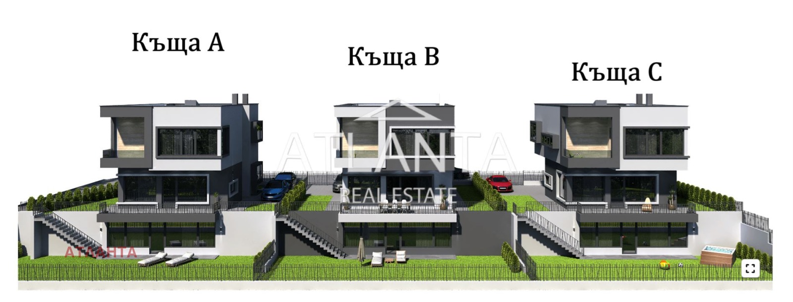 Общо РЗП: 277 кв.м на къща, разположени на парцели от 380 кв.м с терасовидно оформление