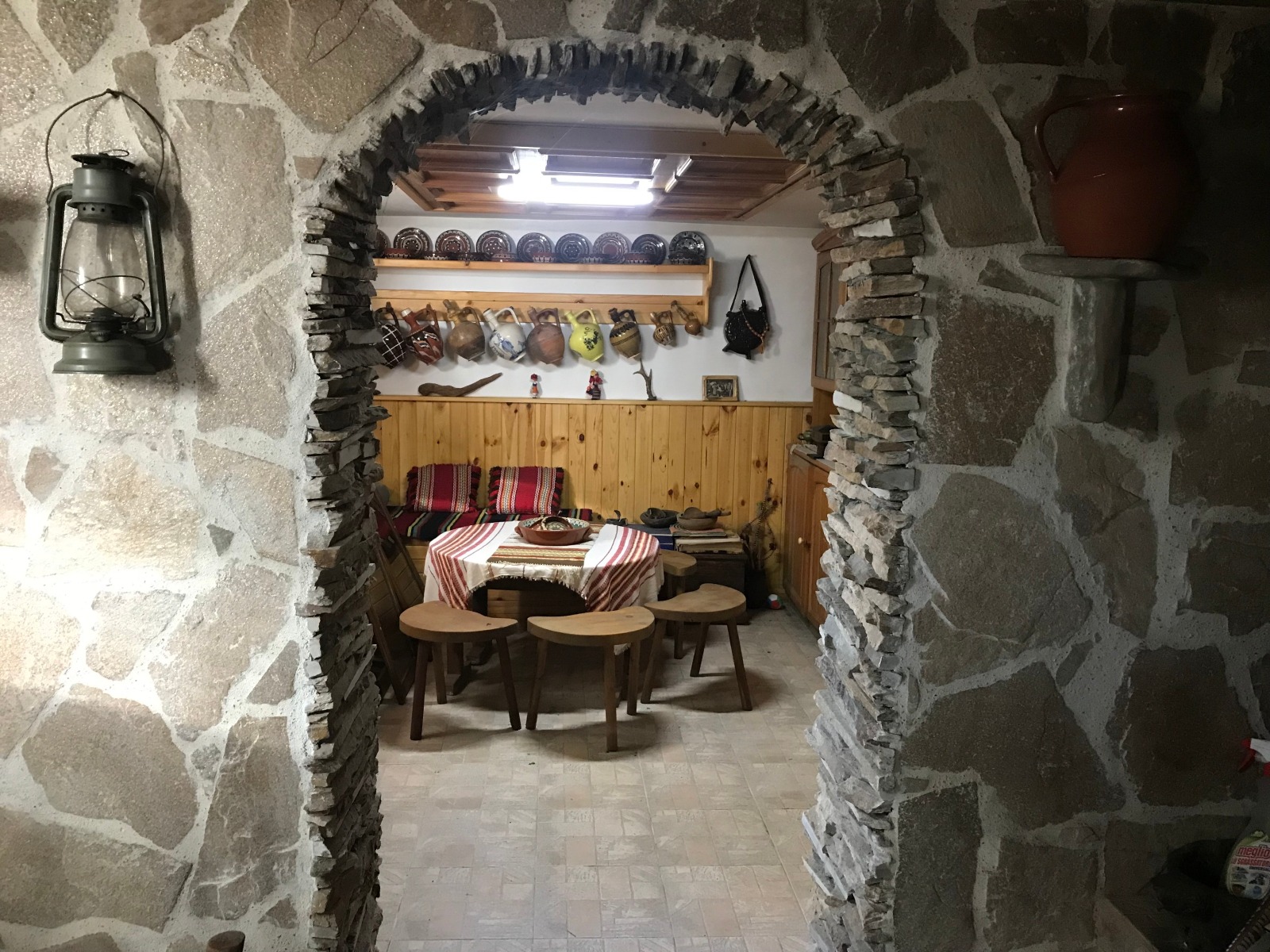 1-ВИ ЕТ.: КУХНЯ, СТАЯ ПОЛЗВАНА ЗА СКЛАД, ДВЕ ПРЕХОДНИ СТАИ ОБОСОБЕНИ КАТО МЕХАНА, БАНЯ С ТОАЛЕТНА. 2-РИ ЕТ.: ХОЛ, ДВЕ СПАЛНИ, ЕДНАТА ПРЕХОДНА КЪМ КАБИНЕТ, БАНЯ С ТОАЛЕТНА. ПОДХОДЪТ КЪМ ПОДПОКРИВНОТО НИВО КЪМ МОМЕНТА Е ПОСРЕДСТВОМ СТЪЛБА В САНИТАРНИЯ ВЪЗЕЛ, НО Е ВЪЗМОЖНО ИЗГРАЖДАНЕ НА СТЪЛБИЩЕ. ОТОПЛЕНИЕТО Е С КАМИНА С ВОДНА РИЗА, РАДИАТОРИ И