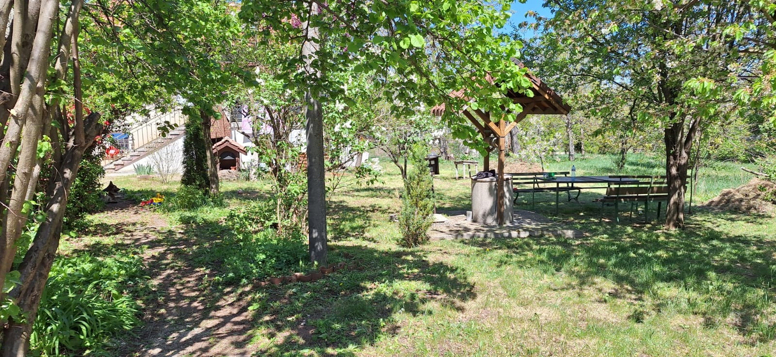 РАВЕН ДВОР С ПЛОЩ ОТ 1860 КВ.М. С ОВОЩНИ ДРЪВЧЕТА И С ИЗЛАЗ НА ДВЕ УЛИЦИ. В ИМОТА ИМА НЯКОЛКО СТОПАНСКИ СГРАДИ ЗА СЪБАРЯНЕ ИЛИ РЕКОНСТРУКЦИЯ. ЕДНА ОТ ТЯХ Е С ПРЕКАРАНИ ВОДА И ТОК И МОЖЕ ДА СЕ ПОЛЗВА ЗА ЛЯТНА КУХНЯ В СЪСЕДСТВО С НАВЕС ЗА БАРБЕКЮ. ОСВЕН ВЪНШНА ЧЕШМА ИМА И ДВА КЛАДЕНЕЦА. СЕПТИЧНА ЯМА- 0888/950740