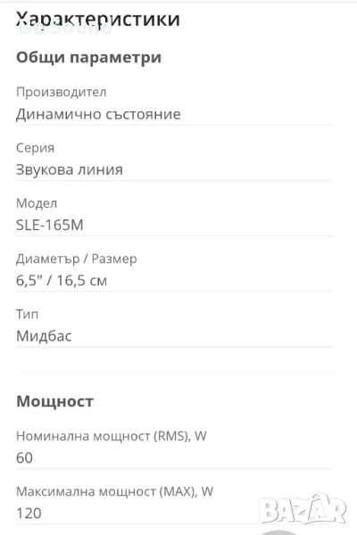 Мидбаси 6,5' SQ/SQL Dynamic State SLE-165M → Обява 51411902