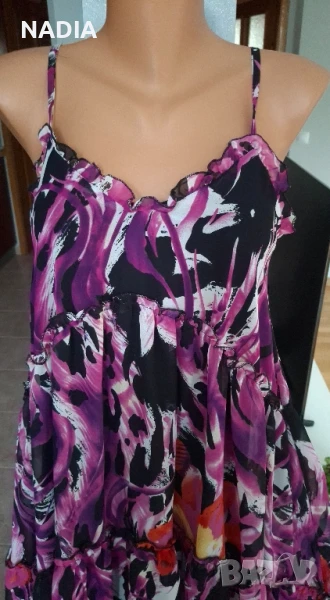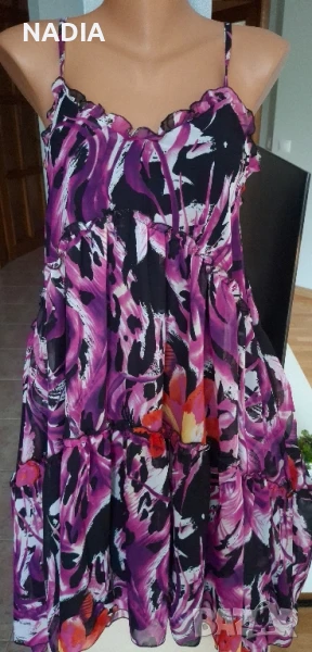 Рокля на Юнона от шифн с подплата. Презрамките се регулират. Дължина отпред 93, отзад 102см, при бюста е на ластик, който се разтяга да 116 см.