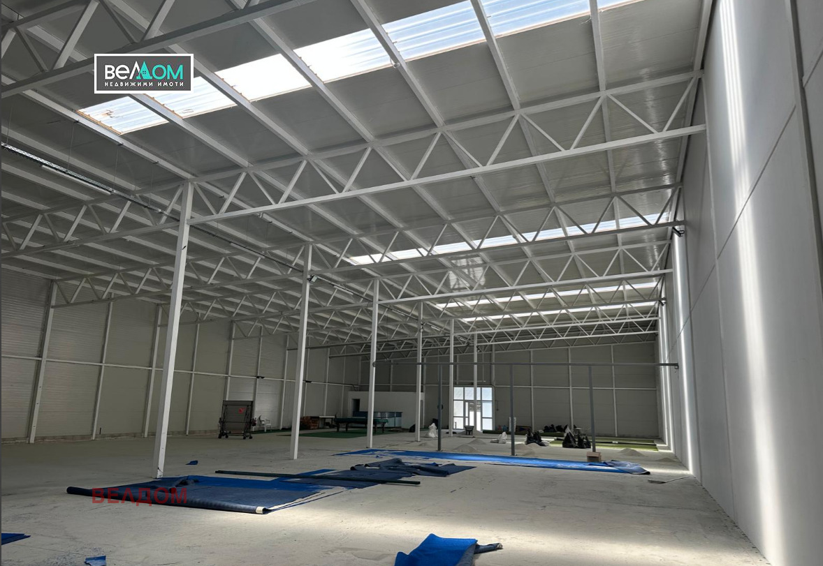 Агенция ВЕЛДОМ дава под наем склад 1000 m2. Метална конструкция, сандвич панели, гладки стени и таван, под-шлайфан бетон, двор-асфалт, паркоместа. Височина на склада 6,00 м, 7,00 м. С големи врати-3 на 3 м, ролетни щори, на кота нула, тир-подход, WC, офис. Възможно е добавянето на още 500 м2. Желателно е да се ползва за складиране на стока, а не за производство. Може да се ползва и като спортна зала.