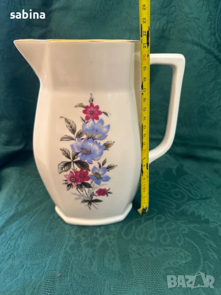 Продавам голяма красива порцеланова кана 1700 мл с двустранен декор и златен кант. Без забележки. Произход: Югославия. Като нова. Размери на снимката.
