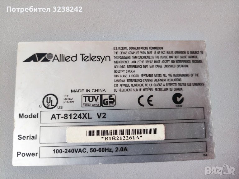 Продавам работещ Ethernet switch ALLIED TELESYN MODEL AT-8124XL.