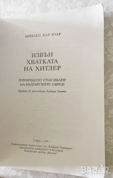 Михаел Бар-Зоар : Извън хватката на Хитлер Героичното спасяване на българските евреи , снимка 1 - Други - 51413571 Михаел Бар-Зоар : Извън хватката на Хитлер Героичното спасяване на българските евреи , снимка 2 - Други - 51413571 Михаел Бар-Зоар : Извън хватката на Хитлер Героичното спасяване на българските евреи , снимка 3 - Други - 51413571 Михаел Бар-Зоар : Извън хватката на Хитлер Героичното спасяване на българските евреи , снимка 4 - Други - 51413571 1/4