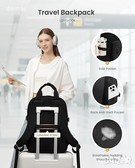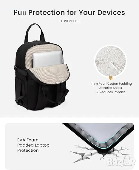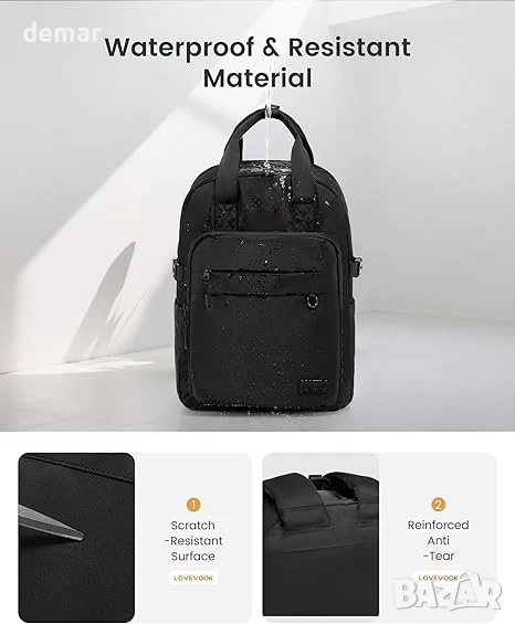 LOVEVOOK модерна дамска раница за лаптоп 15,6 инча, водоустойчива, черна