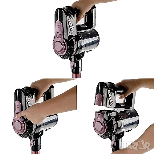 - Сухо и мокро почистване – тази ръчна вертикална прахосмукачка може да обира течности без проблем;