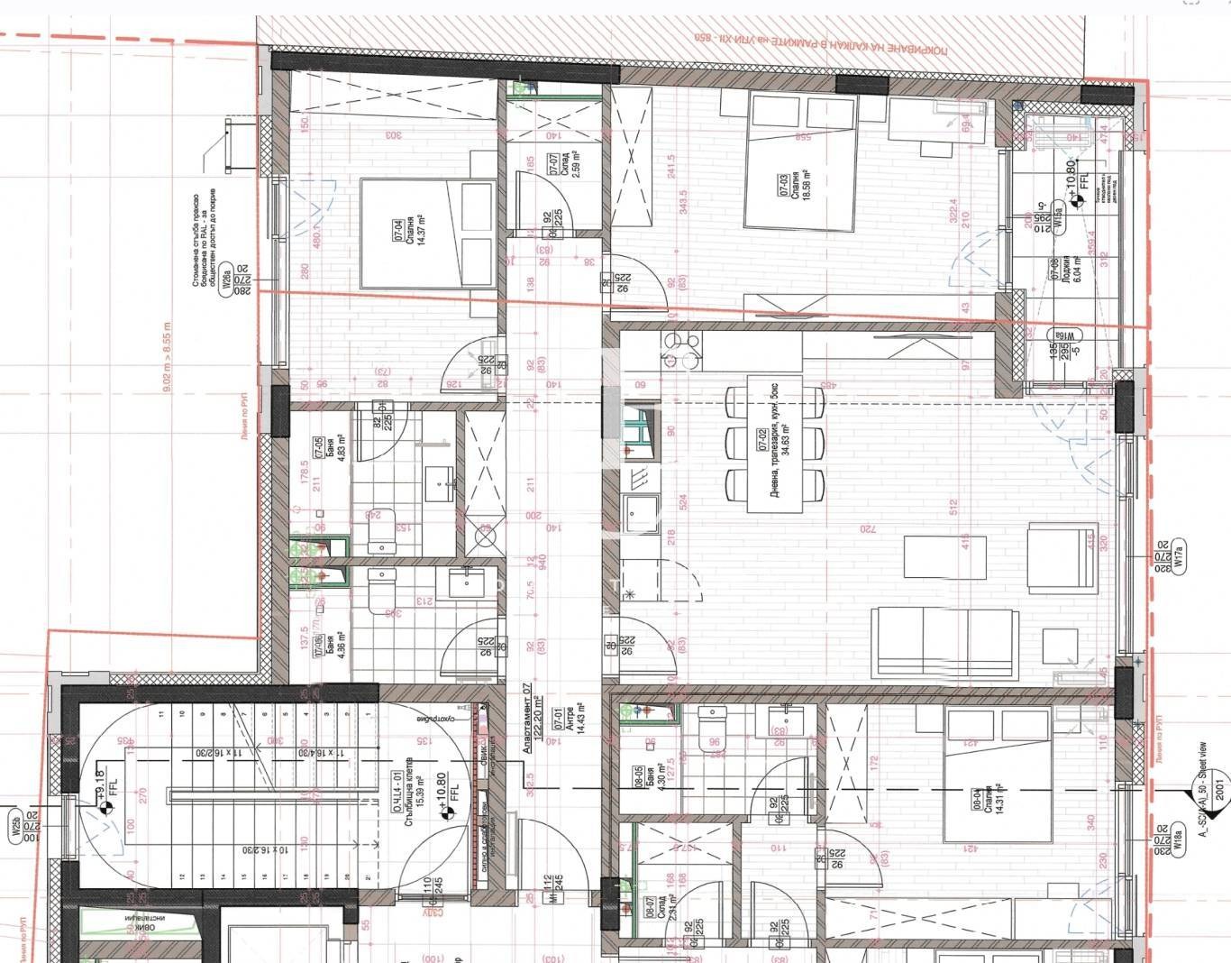 Апартаментът разполага с просторна дневна с кухня от 35 кв.м., създаваща усещане за простор и светлина. Главната спалня е с площ от 19 кв.м., а втората спалня - 15 кв.м., предлагащи комфорт и спокойствие. Жилището включва две бани, функционален склад и просторна тераса. Цената е без включен ДДС. Ref. ID:27125