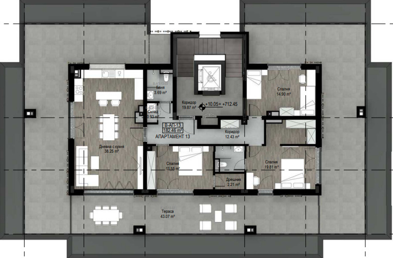 РЕМИУМ ИМОТ! ЦЯЛ ПОСЛЕДЕН ЕТАЖ! 3 ПОДЗЕМНИ ГАРАЖА! ВИСОКИ ТАВАНИ! 360 ГРАДУСОВА ПАНОРАМА! ТЕРАСА! Хоум ту ю представя четиристаен пентхаус (140 м2 чиста площ без терасата) в най-предпочитаната част на Бояна. Имотът е разположен на целия последен етаж в луксозна новострояща се сграда в затворен комплекс. Апартаментът се състои от дневна с кухненски бокс (40м2) и панорамни прозорци към цяла Витоша, три спални, едната от които (19 м2) с дрешник и собствен санитарен възел, още една баня с тоалетна, обслужваща двете спални и дневната, складово помещение. Има възможност асансьора да спира директно в апартамента. От всяка стая има излаз към терасата, от която се откриват зашеметяващи панорамни гледки и към Витоша и към цяла София. Заедно с апартамента се предлагат и три подземни гаража с изводи за зарядна станция за електромобили на цени от 40 000 . Сградата е разположена в нов жилищен комплекс от висок клас в сгушения в полите на Витоша столичен квартал 'Бояна'. Комплексът се състои от четири на брой ниски - четириетажни сгради, всяка от които помещава 13 апартамента и граничи с гора и река. Автомобилното движение е изолирано в подземна улица, така че да няма движение в общите части на комплекса, като паркирането е изнесено под земята - паркинг с паркоместа и гаражи с размера на целия терен. За да купите този имот - обадете се сега и цитирайте този код: 117334