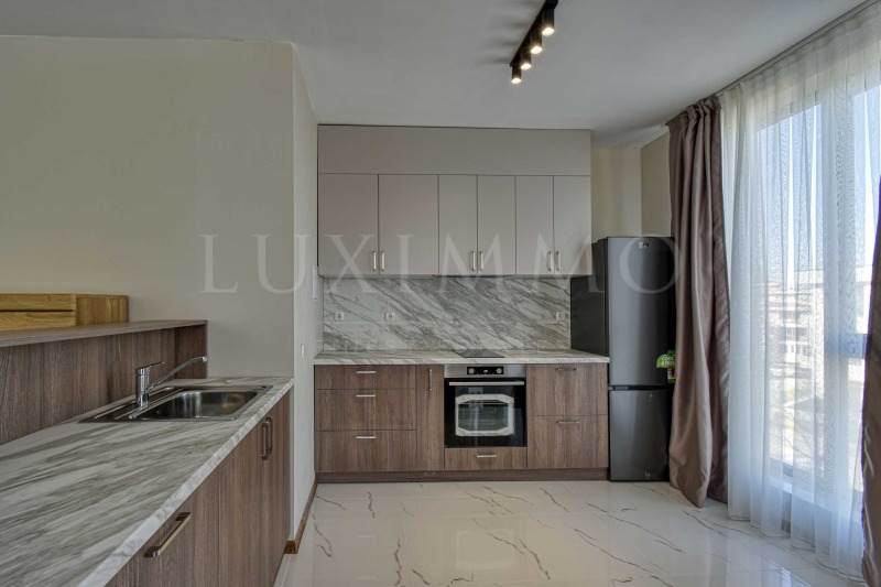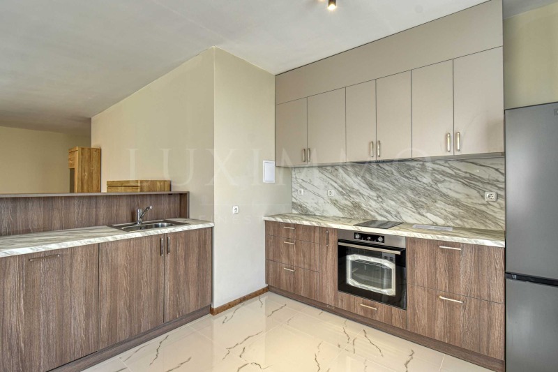 Апартаментът е с площ от 110 кв.м и следното функционално разпределение: просторна дневна с обособен кухненски бокс и трапезария, две уютни спални, две бани с тоалетна и тераса от 28 кв.м, подходяща за отдих на открито. Жилището е обзаведено с чисто нови мебели и електроуреди, подбрани с усет към модерния комфорт и качество.