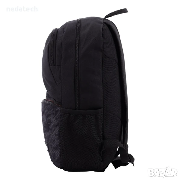 Ученичка раница, черна с отличителен армейски дизайн. Разполага с 1 голямо отделение, 1 по-малко отделение отпред в горната част, един голям джоб и два мрежести джоба отстрани. Има мек гръб и регулируеми презрамки, черни гумени катарами, метални ципове и дръжка.