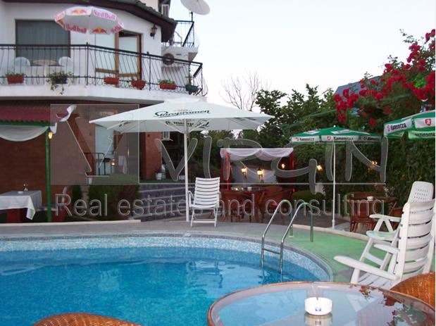 хотел и къща с апартаменти. РЗП-то е 1250 кв.м., построени в парцел 1360кв.м. Разполага с плувен басейн, бар кухня,барбекю зона,паркоместа, ресторант с 50 места, лятна градина. Общо са 25 стаи- 19 двойни ,три единични и три апартамента. Цената е без ДДС ! За огледи- 0898 572 203