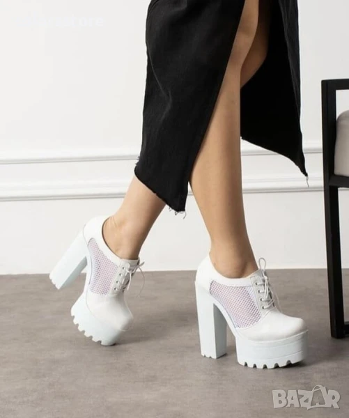 Обувки на ток - бяла кожа - FB30