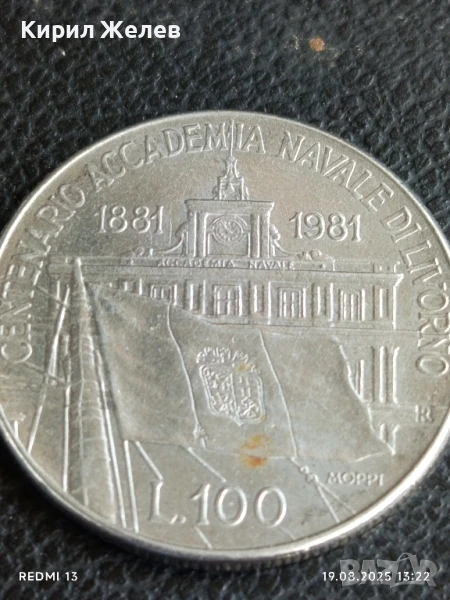 Две монети 100 лири в чест на 100г. военноморска академия Ливорно / 1 шилинг 1963г. Англия 14225 → Обява 51416245
