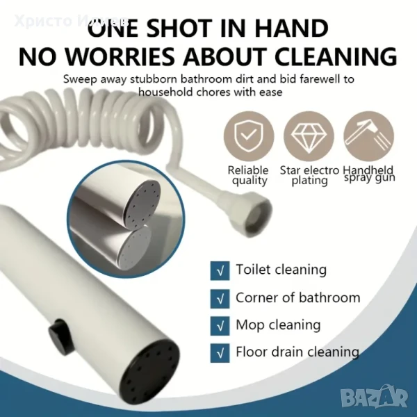 • Душ пистолет с мощна насочена струя за лесно почистване.