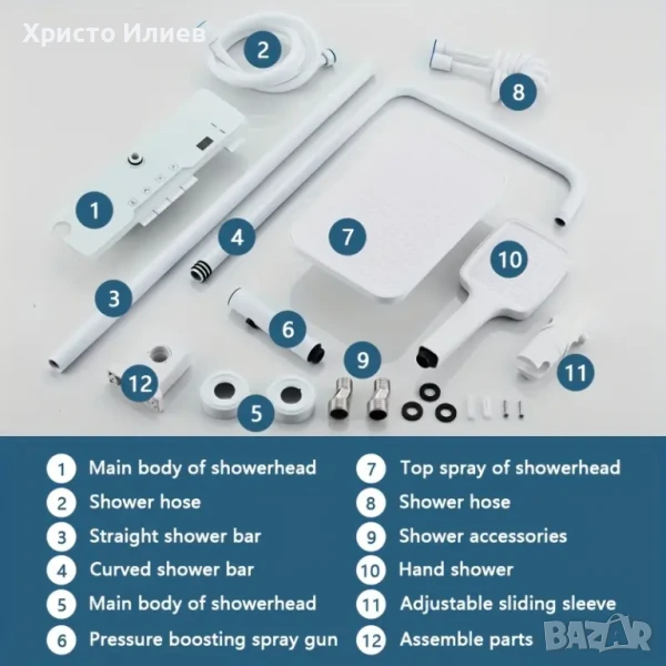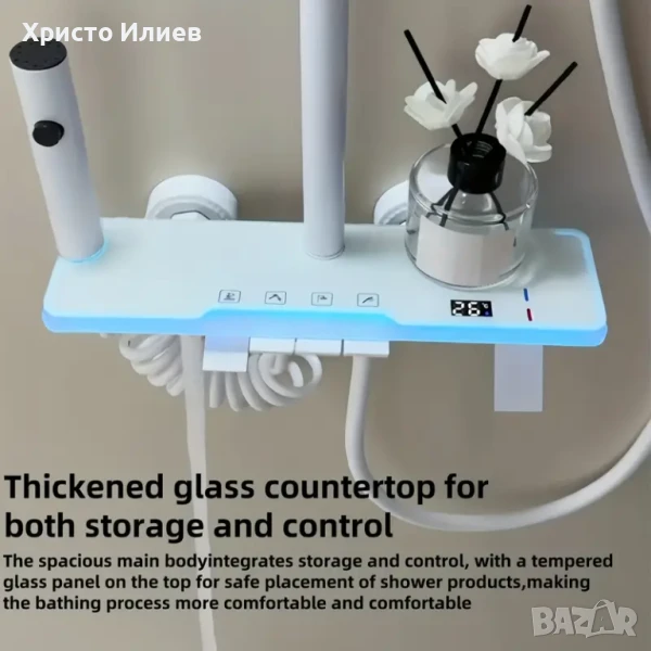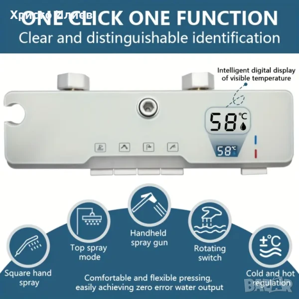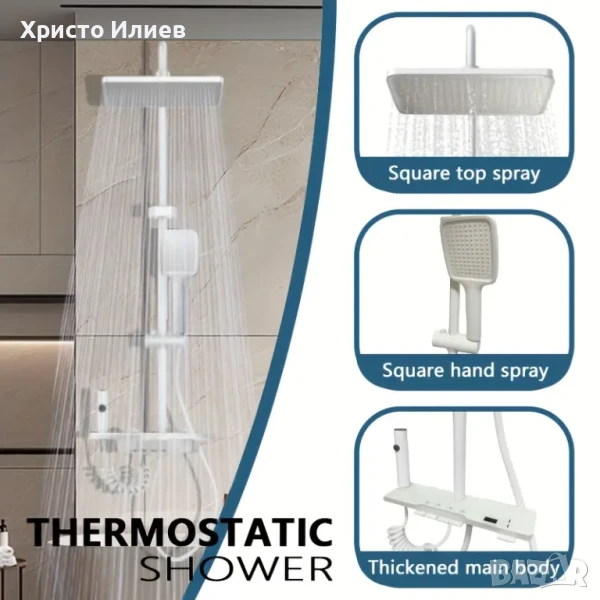 Модерен интелигентен термостатен 4в1 душ за баня с дисплей. Не се използва ток !!!Дисплеят работи благодарение на преминаващата вода , стандартни размери и свързване с ВИК.