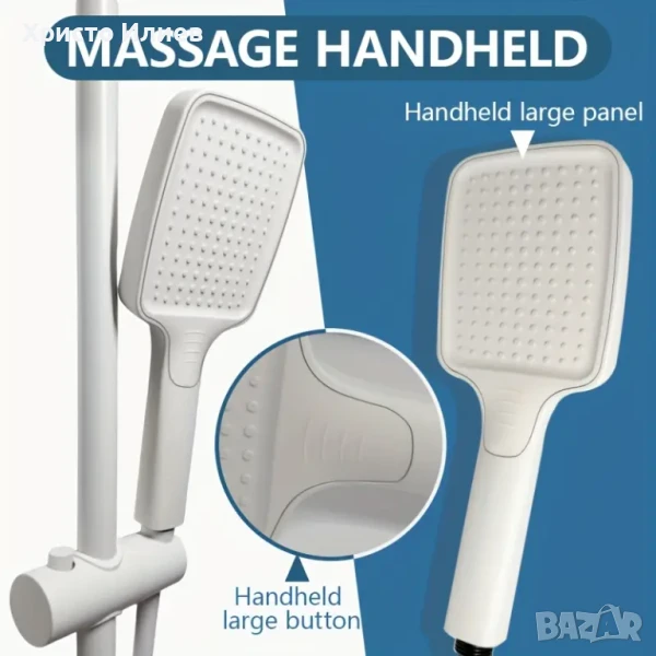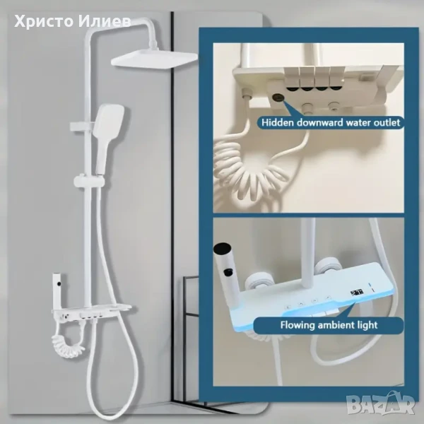 Душ система със светещ смесител Лед LED дисплей 4 функции бутони функция дъжд БЯЛ