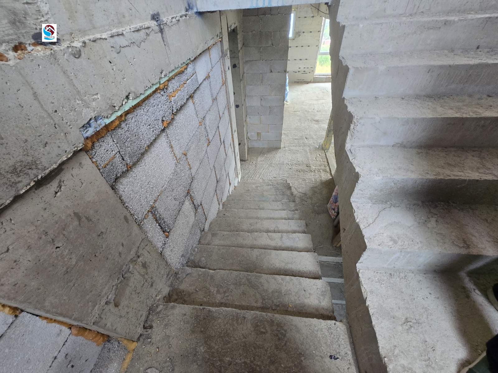 Първи етаж се състои от голямо входно антре , санитарен възел за гости, голямо сервизно помещение , отворена голяма всекидневна с кухня , и отделно голям килер до кухнята.