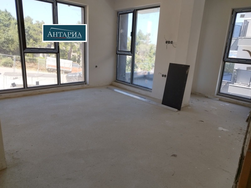 Нов тристаен апартамент в сграда без такса поддръжка. Апартаментът е на втори етаж, ( първи над гаражи), разпределен в коридор, дневна с трапезария и кухненски бокс, две самостоятелни спални, баня с тоалетна, мокро помещение и тераса с изглед към морето. Жилището се предава напълно завърщено с качествени материали материали, със самостоятелни партиди за ток и вода.