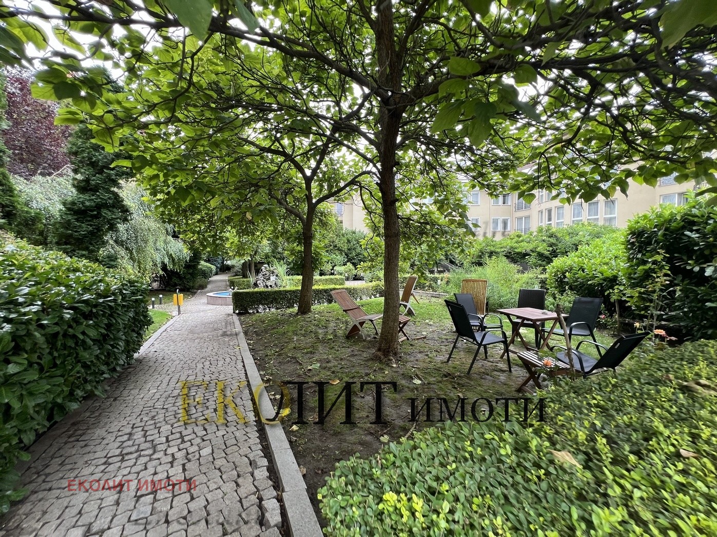 Една тераса с гледка към градинската част от двора на самия комплекс.