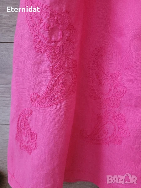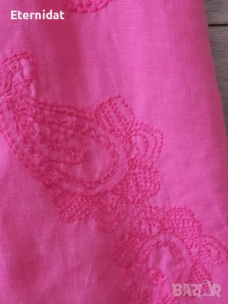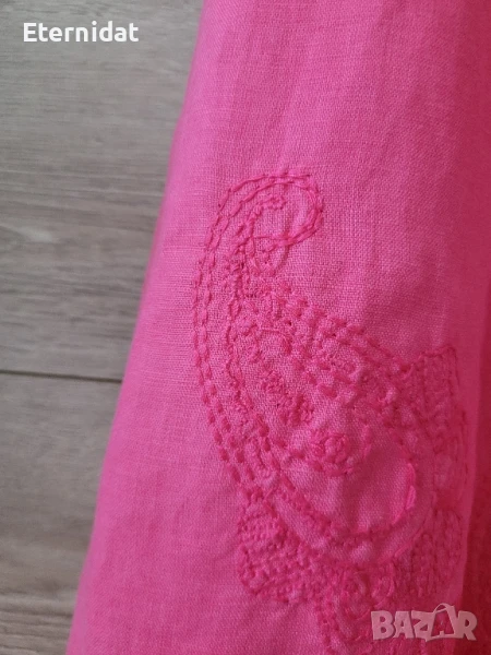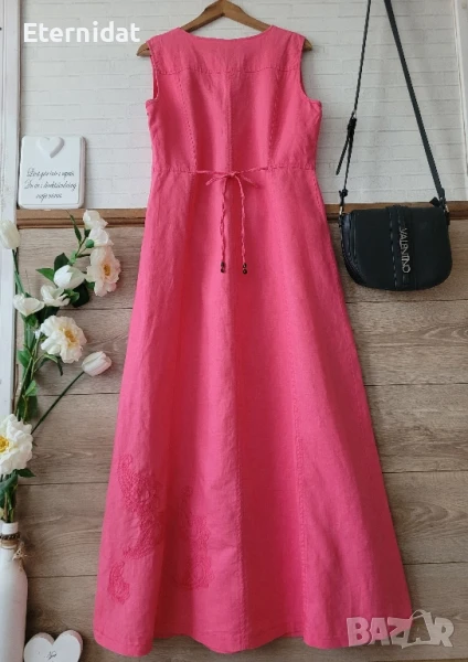 Розова дълга ленена рокля с бродерии → Обява 51417558