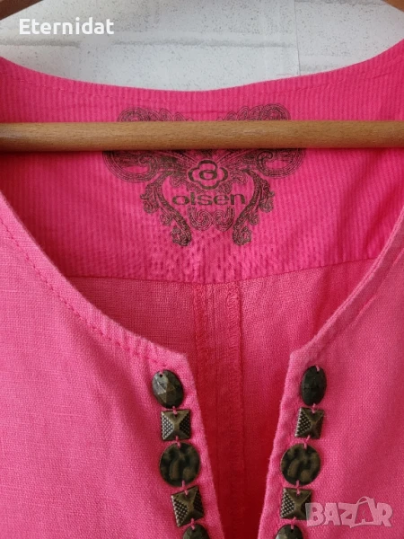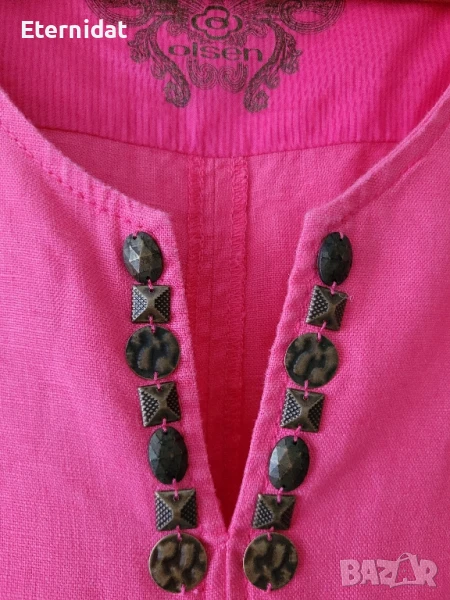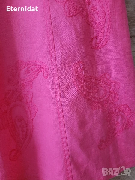 Уникална!!! Дълга лятна розова рокля 100% ЛЕН! Бтанда е OLSEN. Бродирана в долният ляв ъгъл, елегантно пришити елементи около деколтето. Трябва да се види и пипне на живо за да се уверите в изящноста и качеството и! Ще приложа още снимки в коментар. Размер М, подходяща и за Л. Гръдната е 50см ( едностранно измерена). Роклята не е носена. Символична цена 75лв