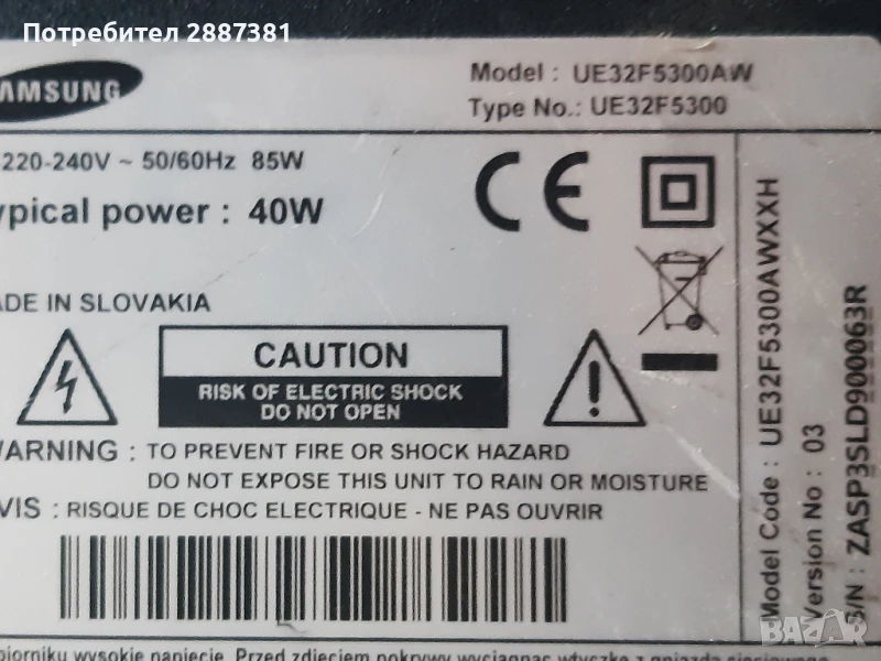 SamsungUE32F5300AW на части BN41-01958 BN44-00605A → Обява 51417611