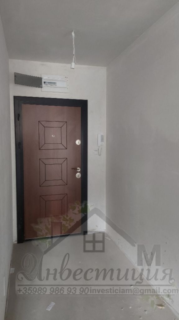 Агенция Инвестиция М, продава двустаен апартамент, ново строителство с акт 16 в нова жилищна сграда. Апартаментът се състои: антре, всекидневна с кухненски бокс, спалня, мокро помещение ,баня с тоалетна и голяма тераса от 57 кв.м. Има възможност терасата да се покрие или да се вкара част от нея към апартамента. Имотът е много интересен и може да бъде модерно и стилно обзаведен. Подходящ е за инвестиция с цел отдаване под наем. Локацията на имота е топ, до големи вериги магазини, училища, детска градина, спирка за градски транспорт, парк и др. Агенцията предлага съдействаме за банков кредит при необходимост. За огледи на посочения телефонен номер 0899 869390.